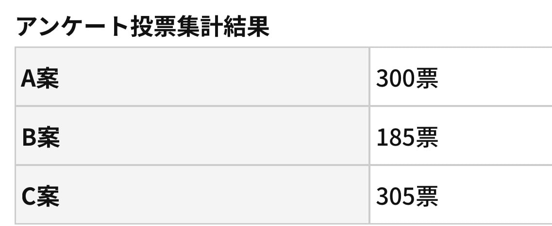 しゃちょ美さんも、私も、A案に投票してて、にしつーでとったアンケートではA案が一番人気だったんだけどなー!