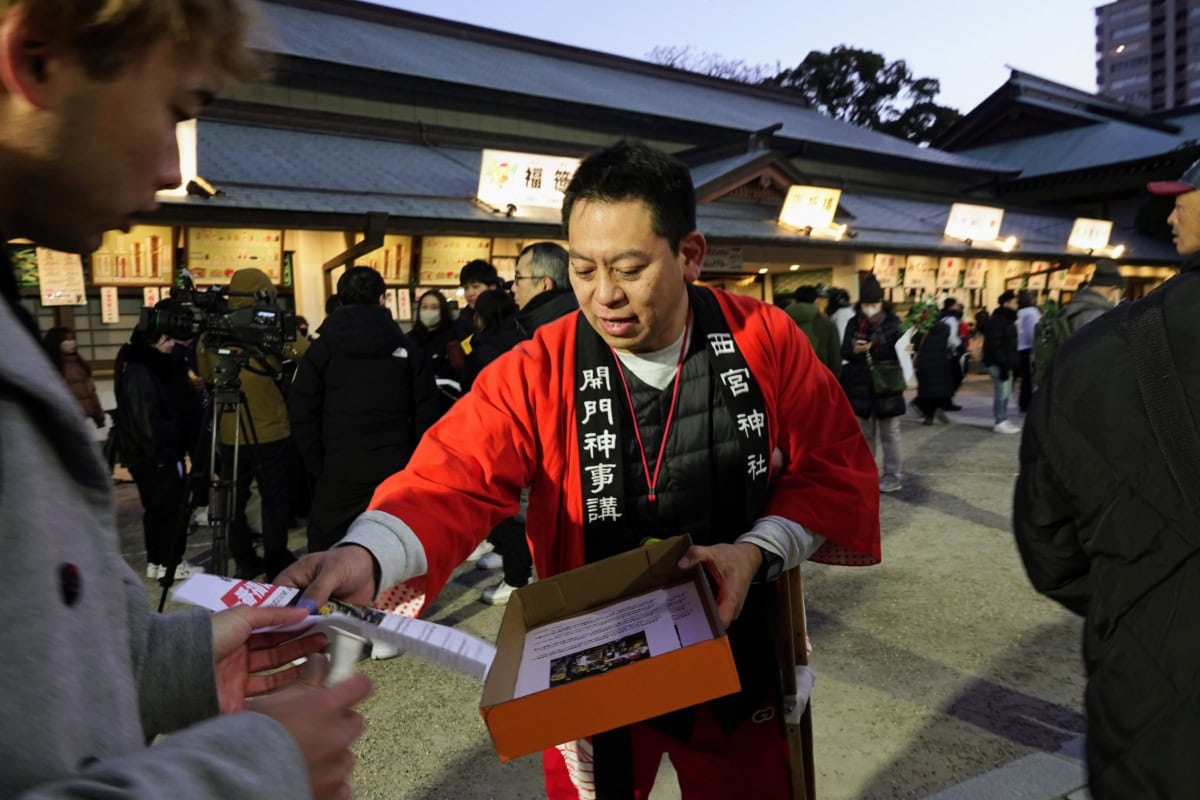 福男選びの運営を担う「開門神事講社」の講長・平尾亮さんです。「かいも〜〜〜ん」って毎年叫んでる人です!