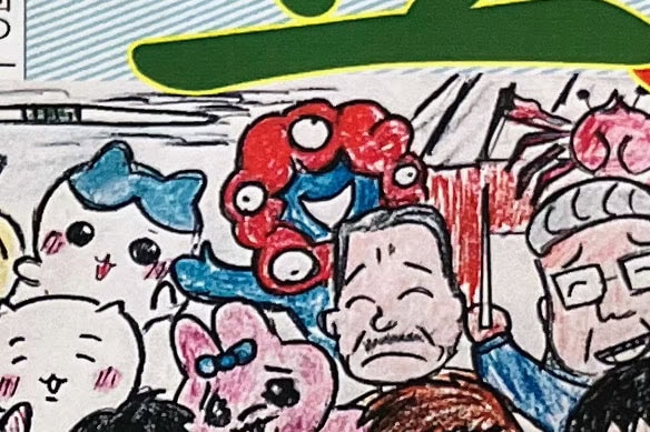 前年に話題になった人やニュースがモチーフに描かれていて、去年の顔がミャクミャクでした〜