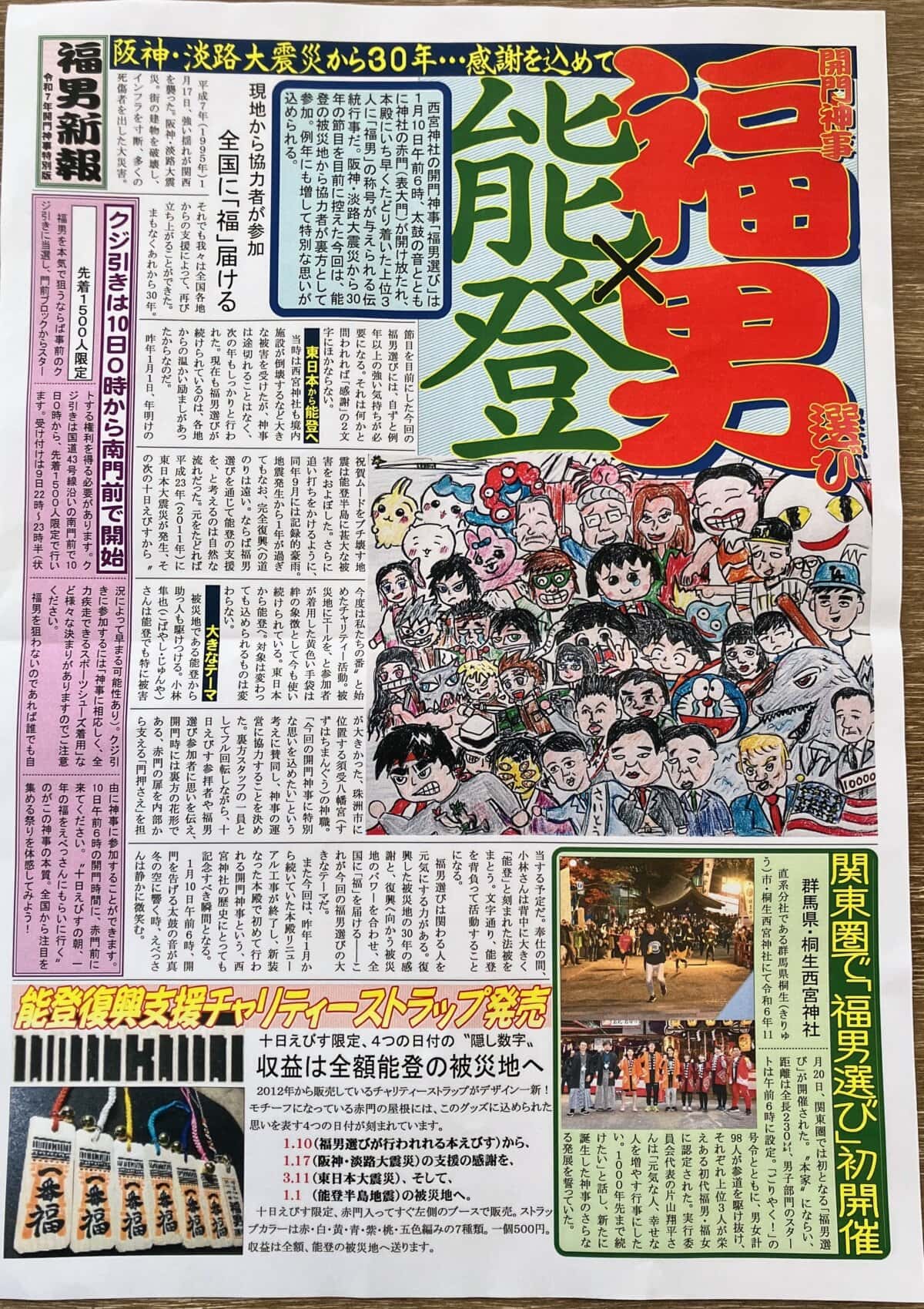 2026年版「福男新報」で使用するイラスト完成!今回も前年に話題になった人やニュースをモチーフにしています。あとは微調整して新聞も出来上がり、開門神事・福男選び前の西宮神社で配布します。一年に一度の〝あの朝〟まであと数日…全力でやり遂げる( ・`ω・´)☆ pic.twitter.com/OfxaWWdo2a