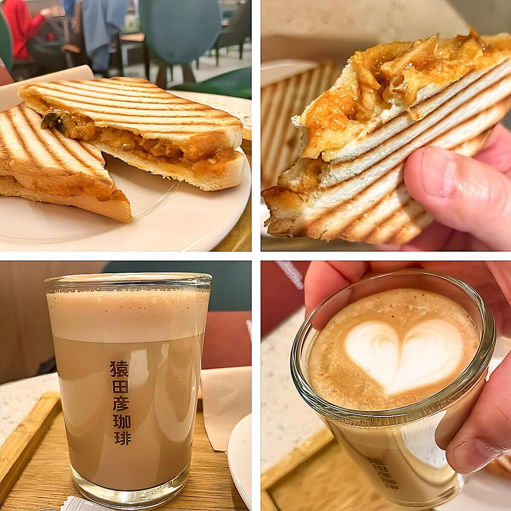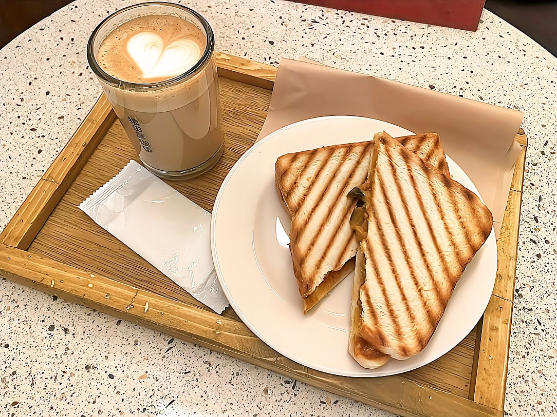 中身ぎっしりのホットサンドに、クリーミーなラテ。満足感あるカフェタイム🥪☕️