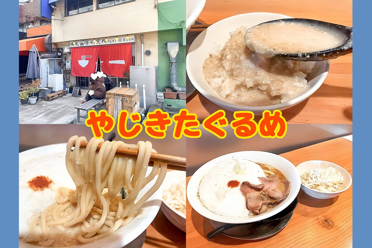 小曽根線沿い池開町にあるラーメン専門店「鳴尾山芋研究所 FLAT BUSH」にやじきたさんが行ってきました〜!