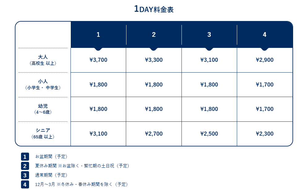こちらは通常価格。高校生以上で400円、中学生以下で200円お得です~。65歳以上は同額。