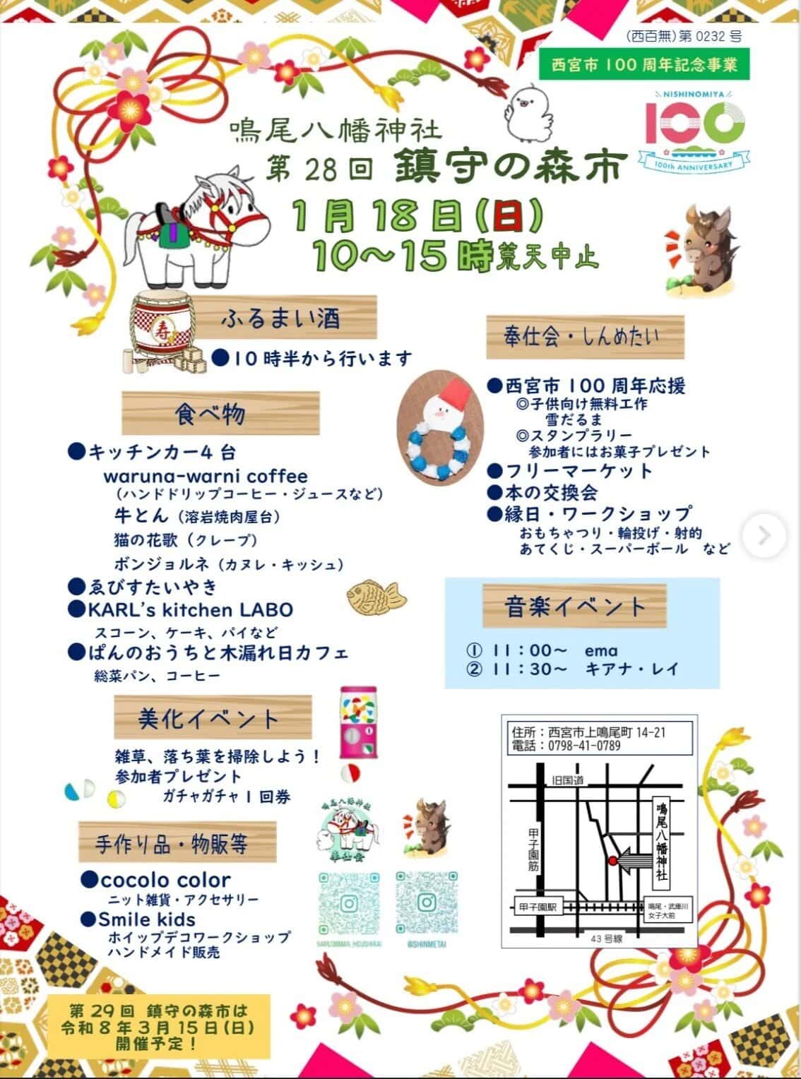1月18日(日)、鳴尾八幡神社で「鎮守の森市」が開催されるようです。