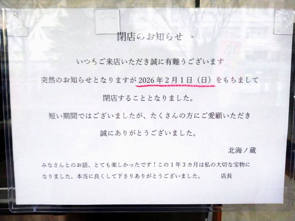 2月1日(日)をもって閉店されるとのこと。インスタグラムにもお知らせが出ていました。
