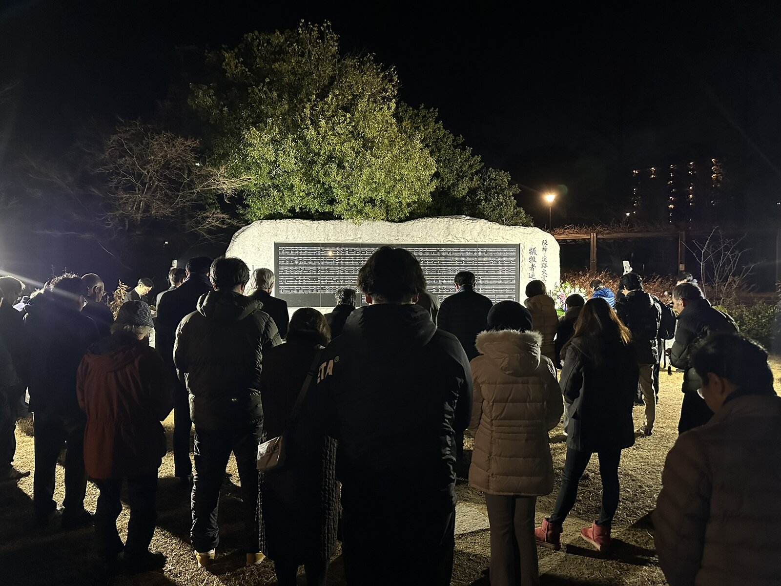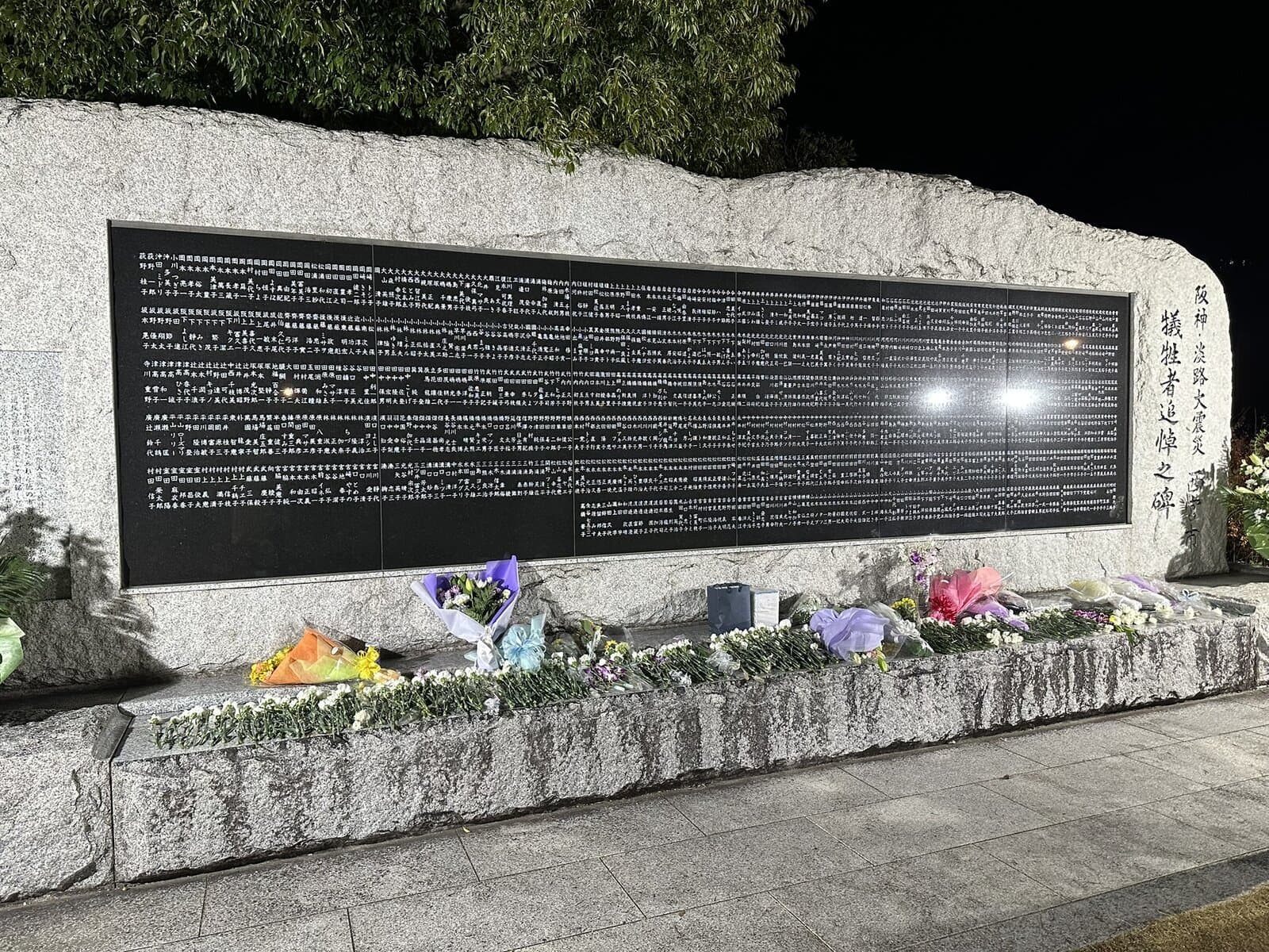 献花は本日1月17日の16時まで「震災記念碑公園」で行われます。(お花は限りがありますが、用意されています。)