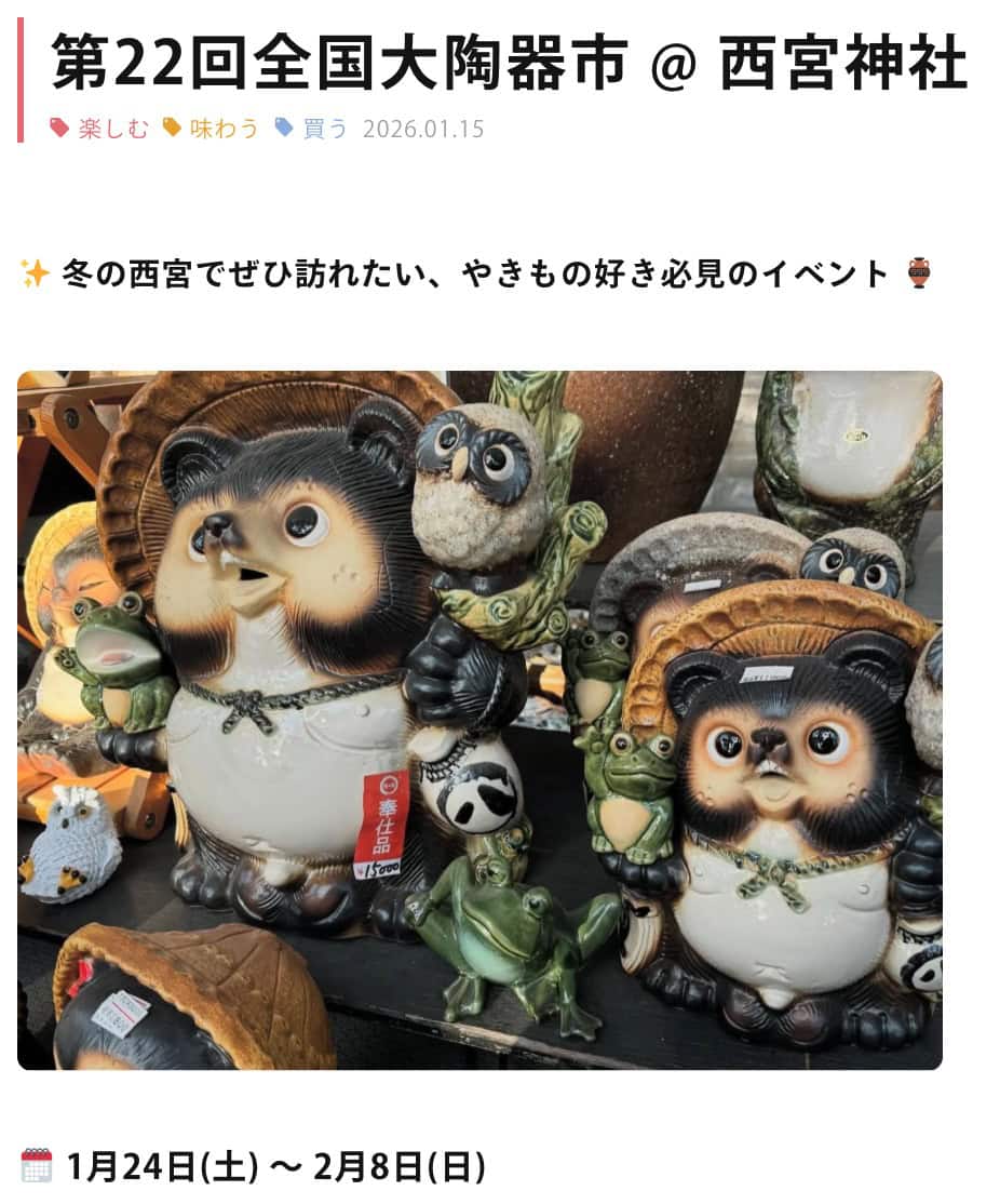 西宮神社で「大陶器市」やるみたい。全国の焼き物が大集合
