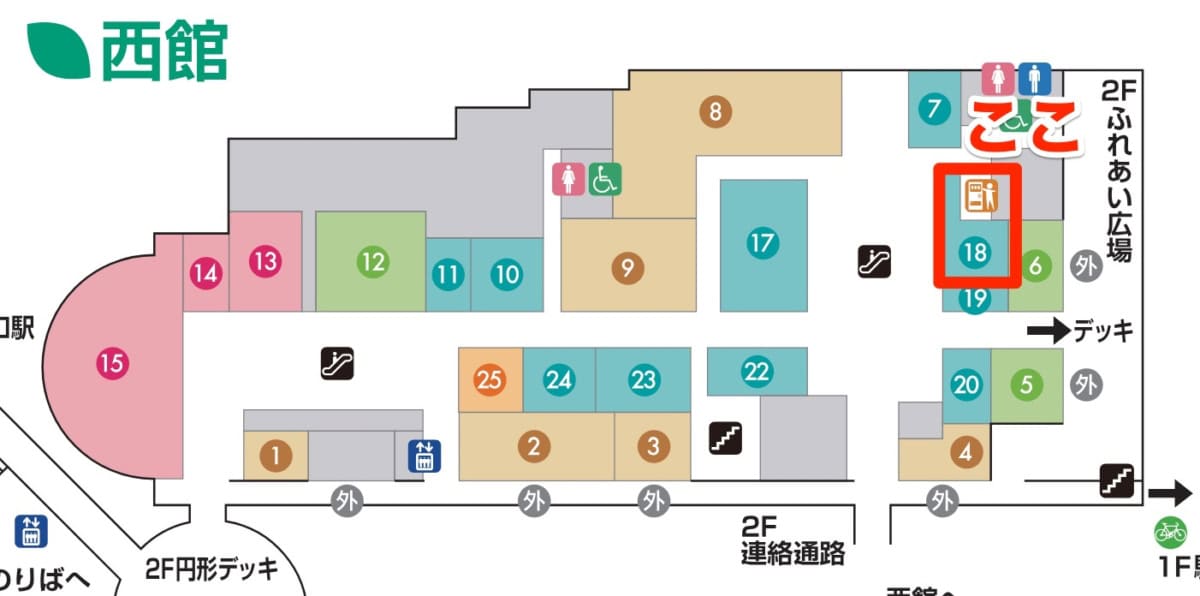 西館2階のエスカレータ付近。眼鏡市場のちかく。