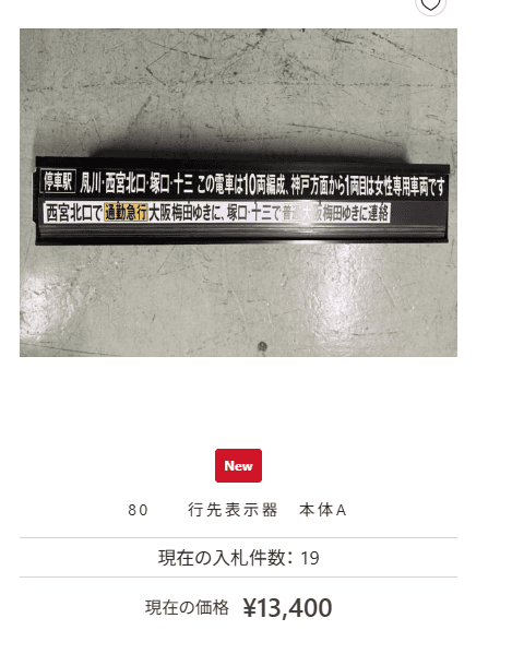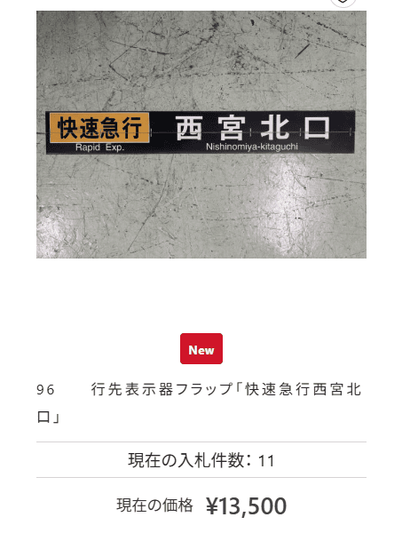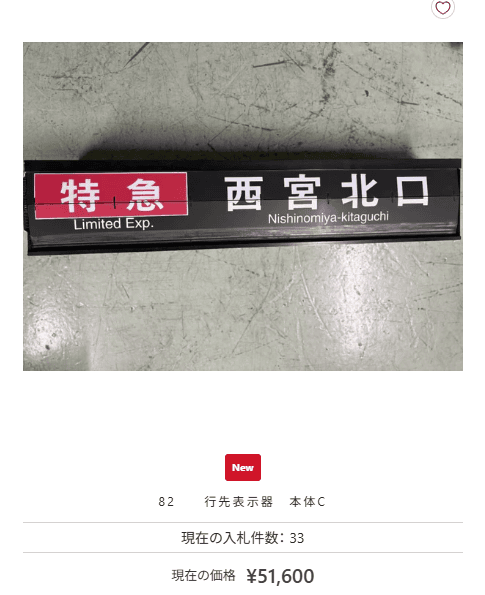 「特急・西宮北口行き」は1月18日11時30分現在で51600円。入札件数は33件でトップです~!