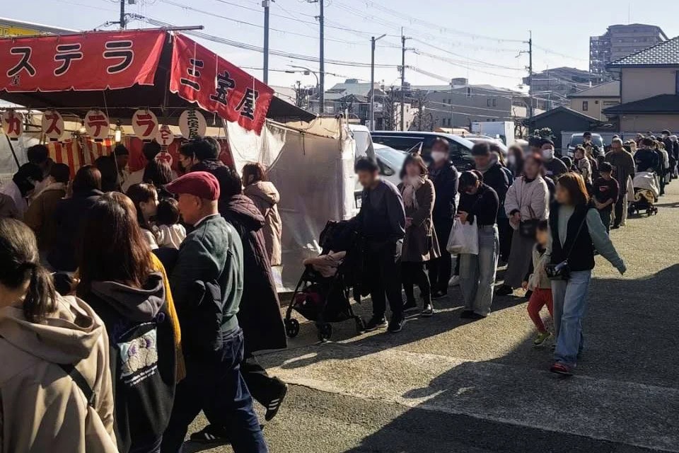 「三宝屋」の大行列。西宮を代表するベビーカステラの屋台