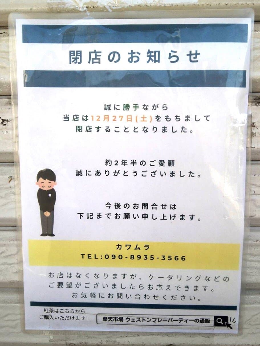 お店は閉店しましたが、ケータリングの相談は引き続き電話にて対応しているとのこと。また、お店で扱っていた紅茶は楽天市場から購入できるそうですよ☕️