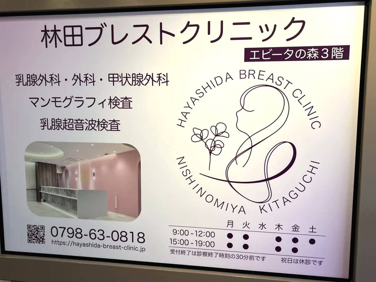 西宮北口駅ちかく甲風園に「西宮北口 林田ブレストクリニック」という乳腺外科ができています。