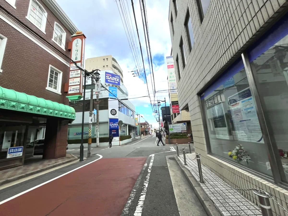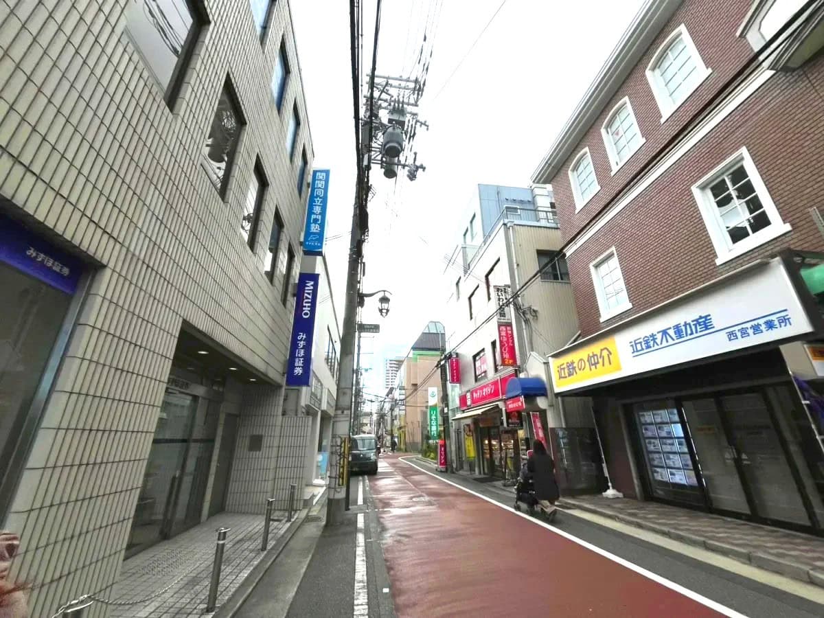 反対方向に行くと、セブンイレブン、キッチンオリジン、ファミリーマート、KFC、ふじやなどがあり、西宮北口駅前へ。