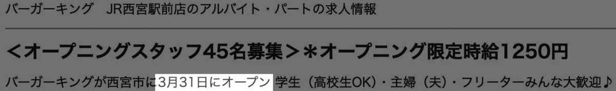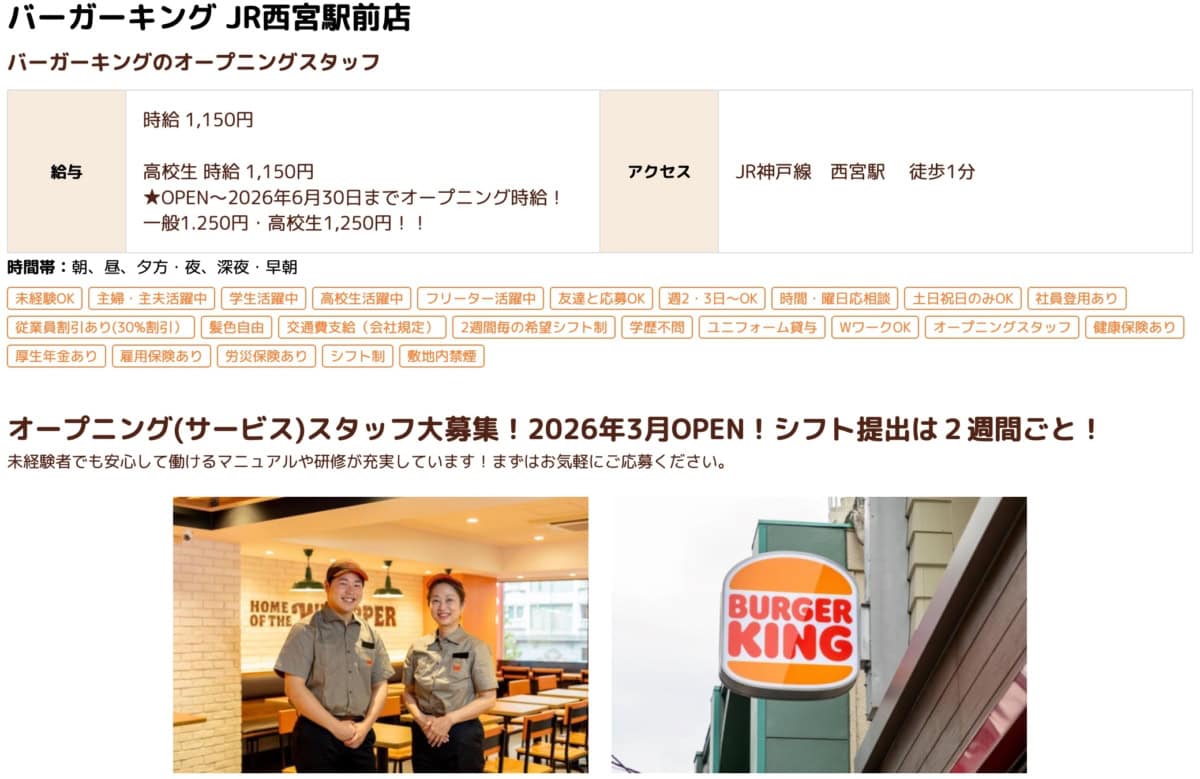 バーガーキング JR西宮駅前店 バーガーキングのオープニングスタッフの求人詳細―バーガーキング 求人サイトより引用