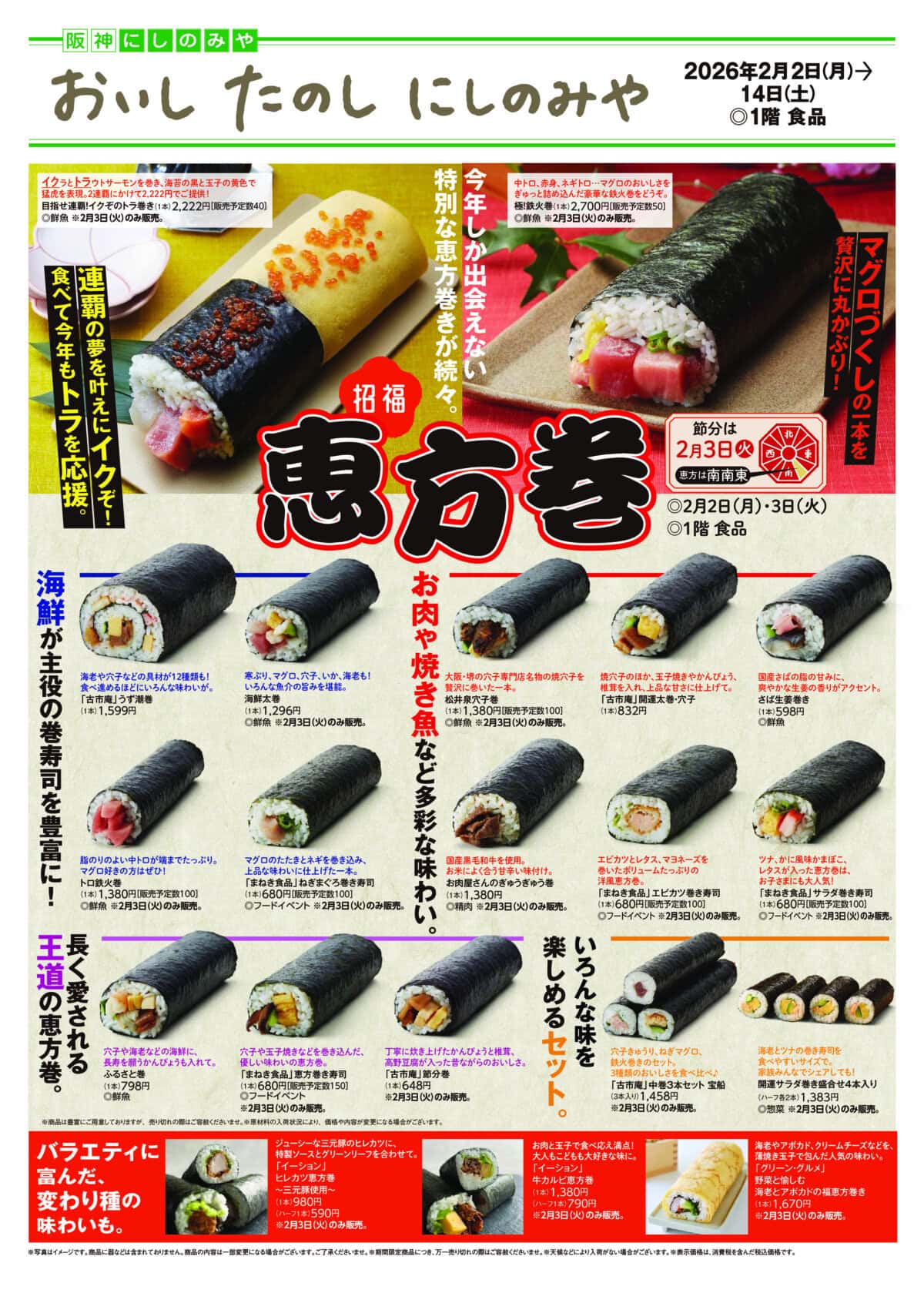 恵方巻きにバレンタインまで季節のすんごい商品がまとまって集まります!おいしくて楽しい阪神・にしのみやに行ってみてくださいね。限定品も多いので狙ってるのがあればお早めに〜