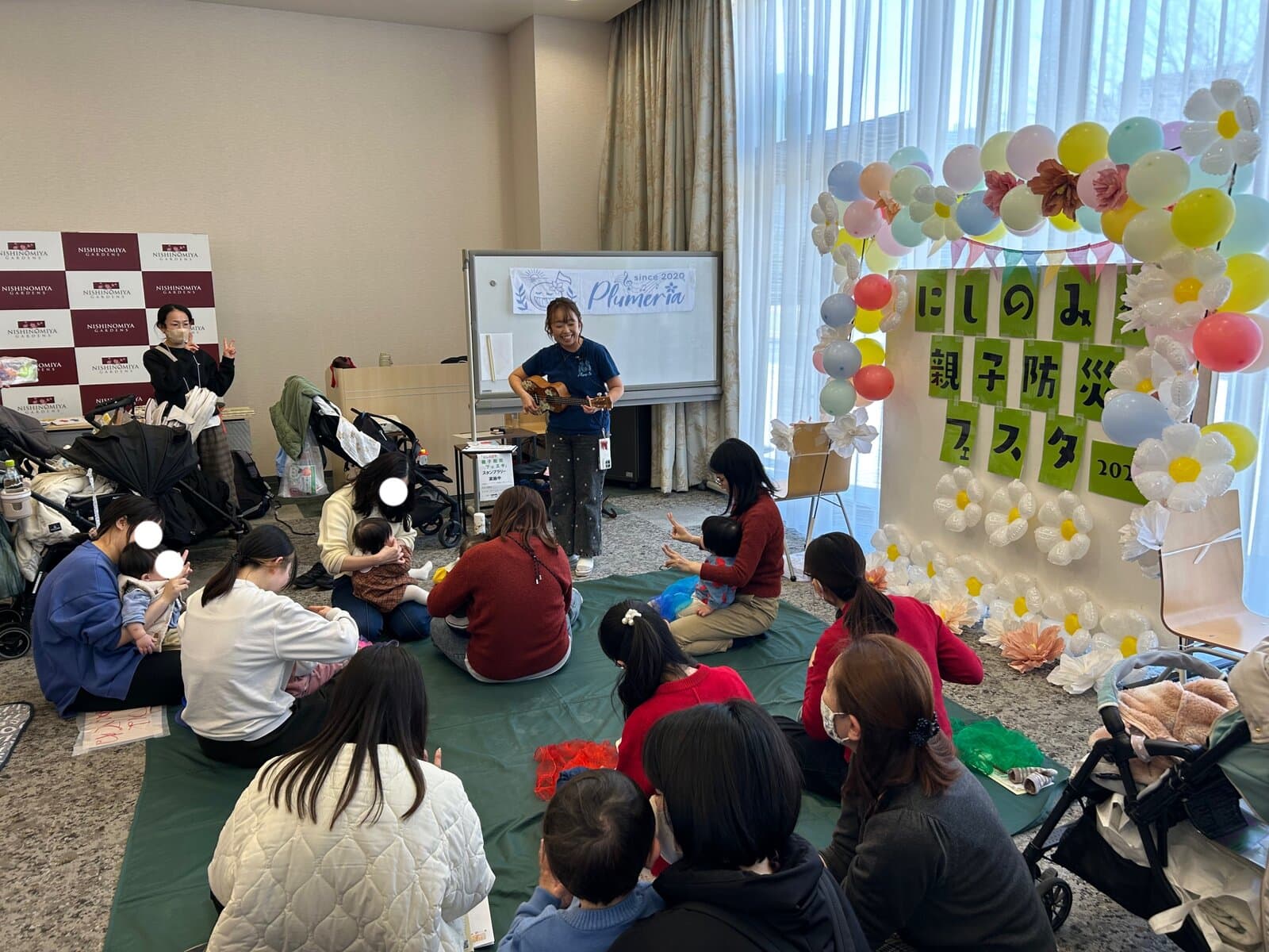 プログラムは続き、11:00〜音楽教室Plumeriaによるベビーリトミック👶🏻普段はウクレレをたくさん使い、賑やかにハワイアンリトミックをするようですが、今回は防災イベントということで、避難場所など静かな場所にいることを想定して静かな動きで親子で楽しまれていましたよ〜