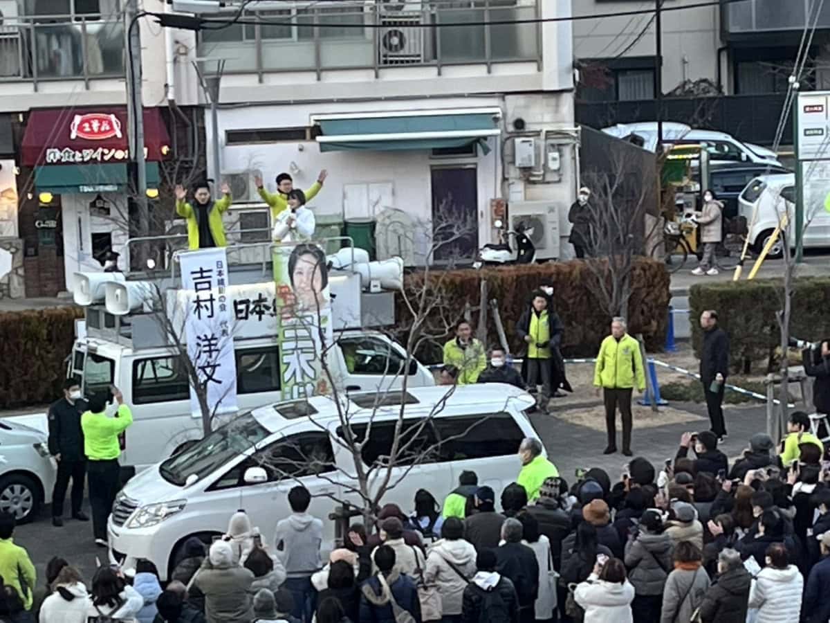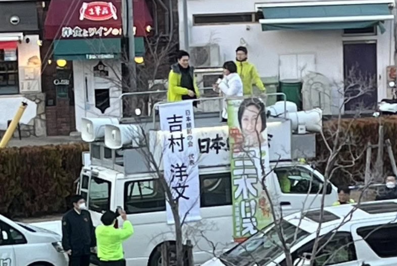 昨日1/29(木)にガーデンズ北の高松ひなた緑地に日本維新の会の代表の吉村さんがきていたようです。
