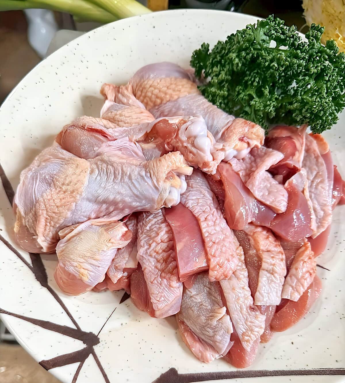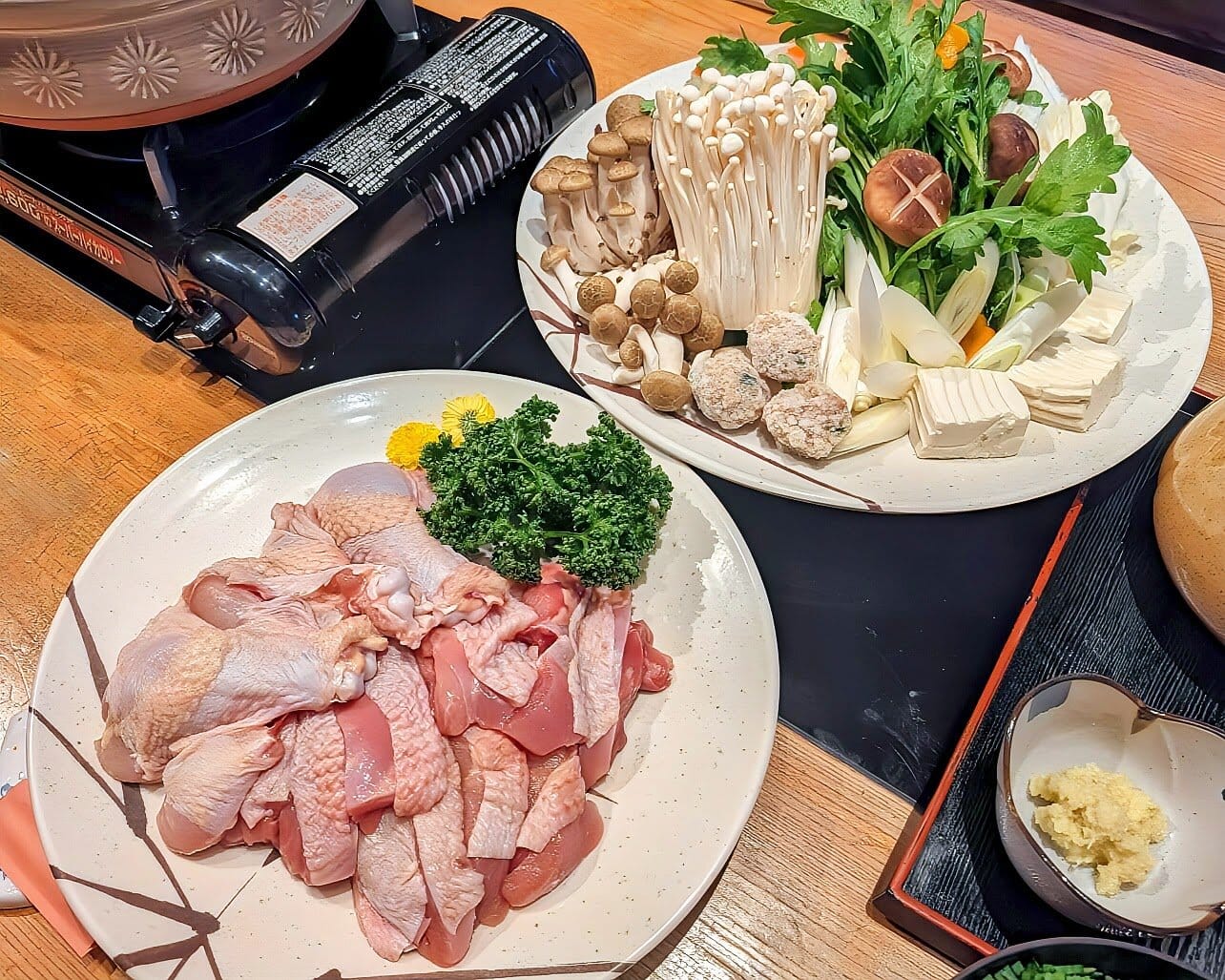 1人前には、骨付きモモ・ひらきモモ・手羽の3部位盛り。鍋野菜に加えて、〆のうどんは「まず食べきれない量」とのこと。さすが西宮が誇るうどんの「すじかま」ですよね。