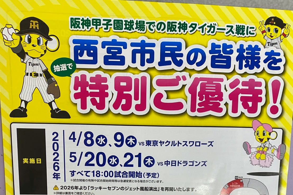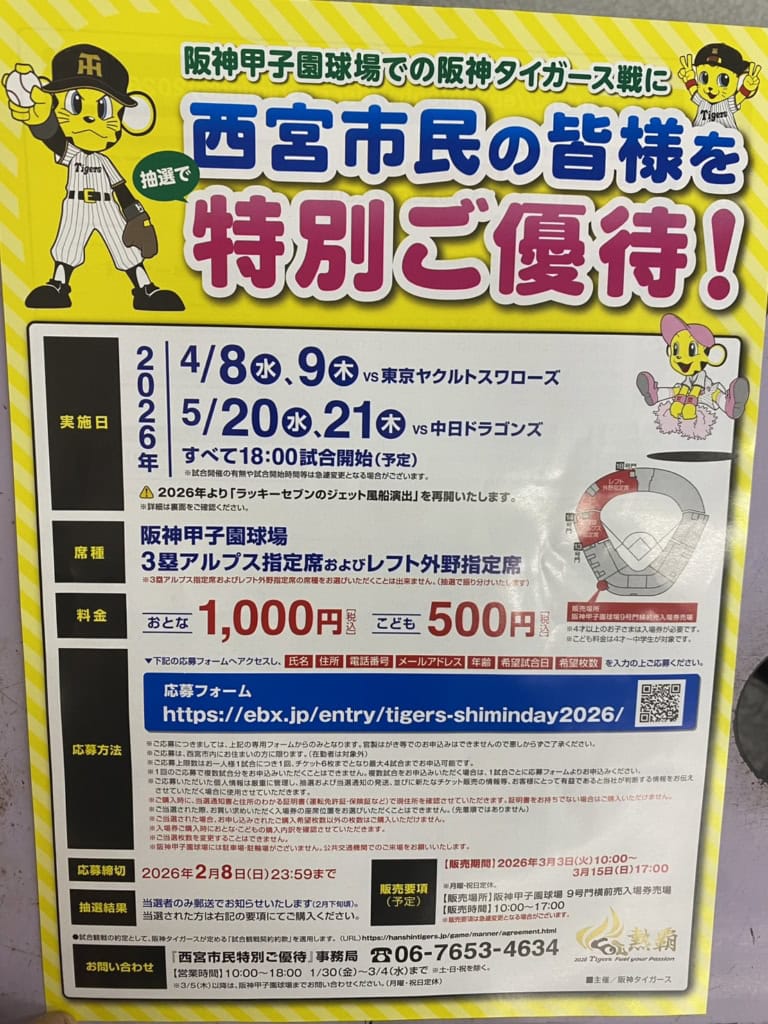西宮市民限定のタイガース優待チケットの応募は2月8日(日)までです。