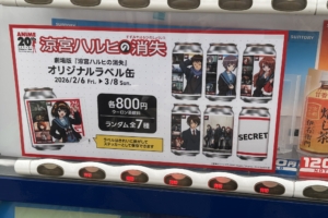 サントリーの自動販売機で2026年2月5日から3月8日まで「涼宮ハルヒの憂鬱」の「ウーロン茶」が発売されるみたいです。