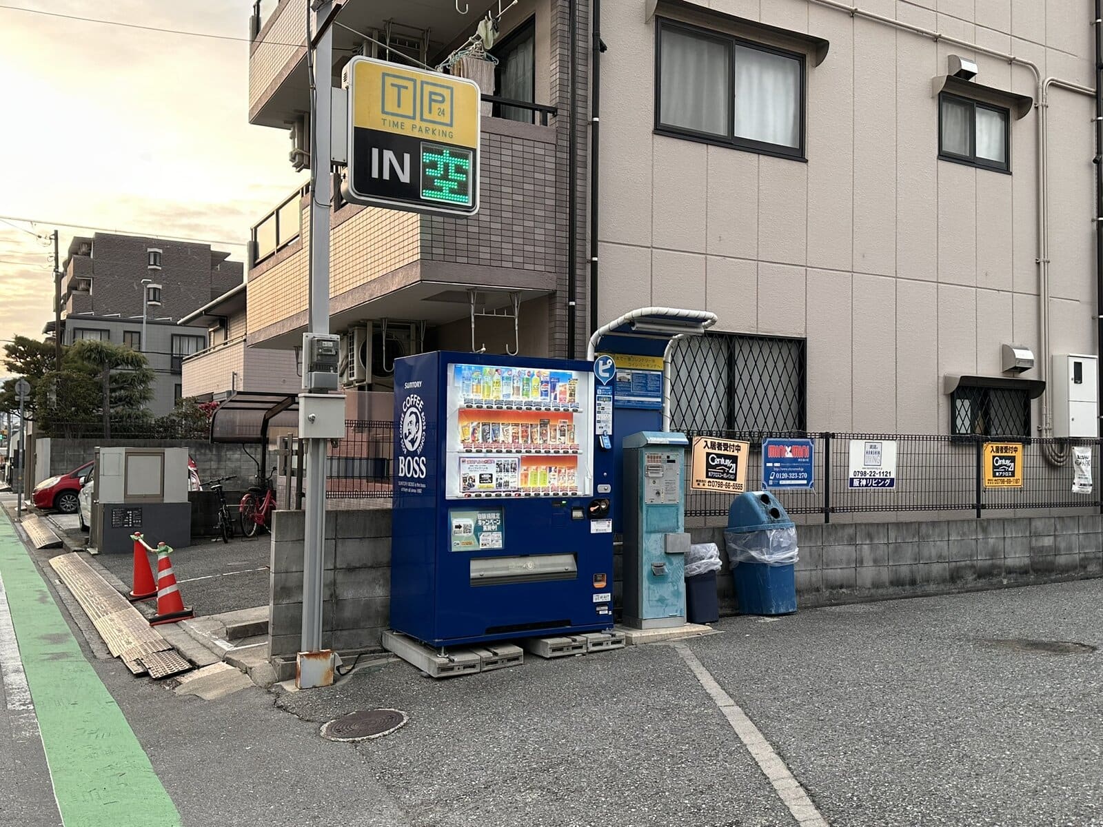 「コロワ甲子園」駐輪場の自販機と