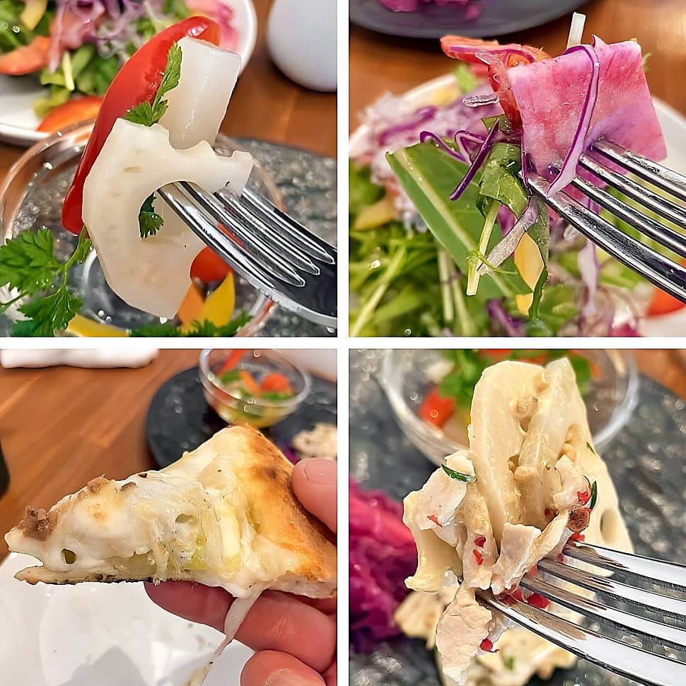 本格石窯で焼き上げたナポリピザに、彩り前菜ずらり。