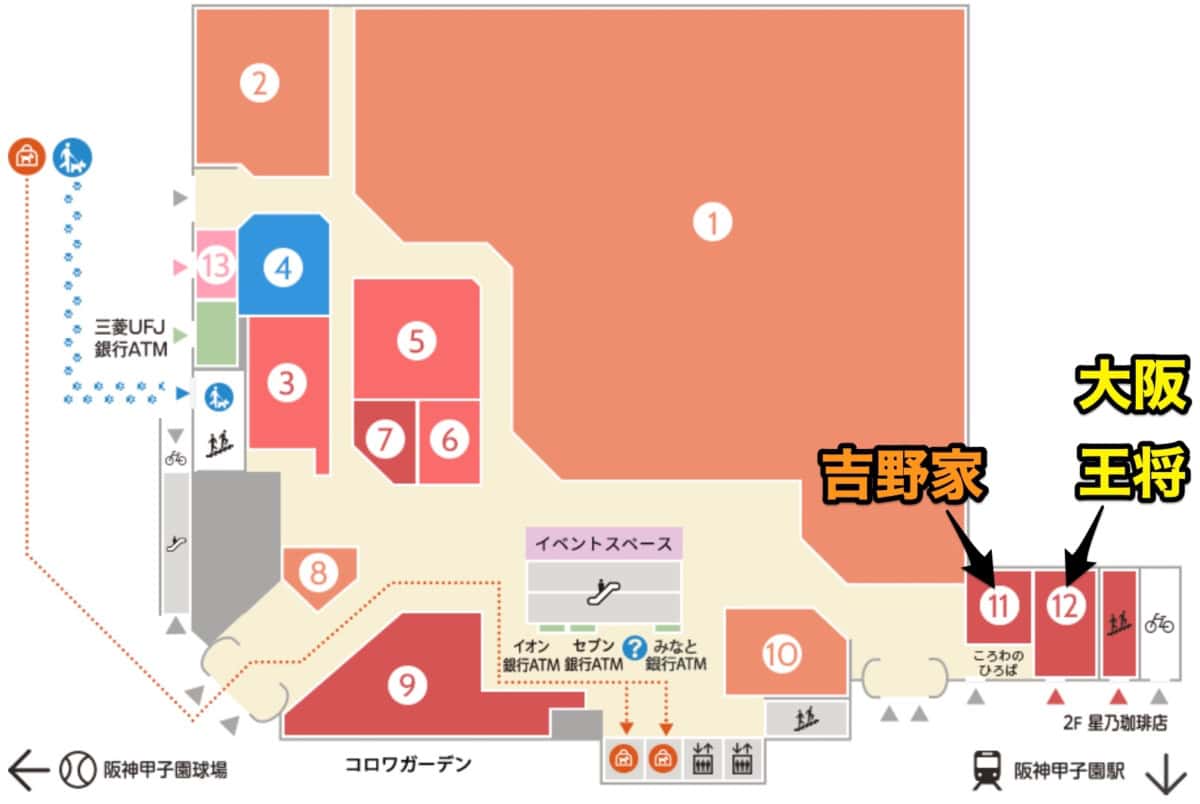 1階の阪神甲子園駅側入口付近。