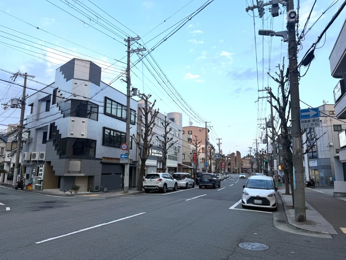 反対方向に行くと、ローソン、上島珈琲店があり越木岩筋へ。