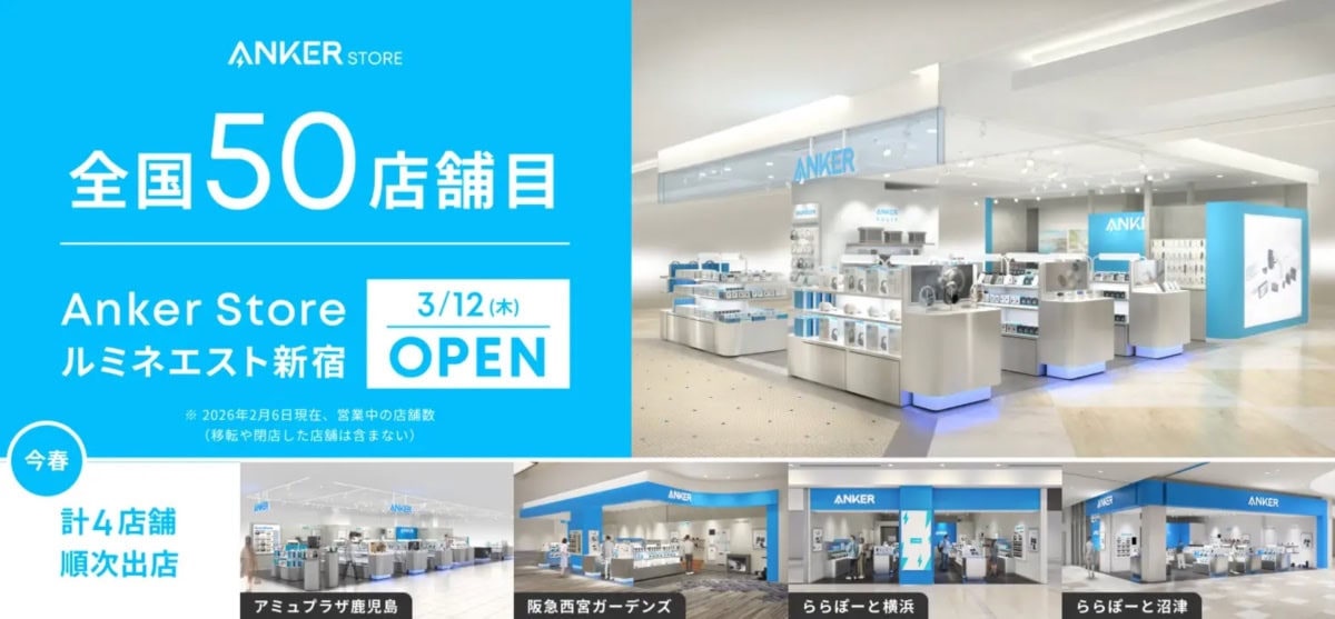 阪急西宮ガーデンズに、モバイル周辺機器専門店「Anker Store(アンカー・ストア)」ができるようです。