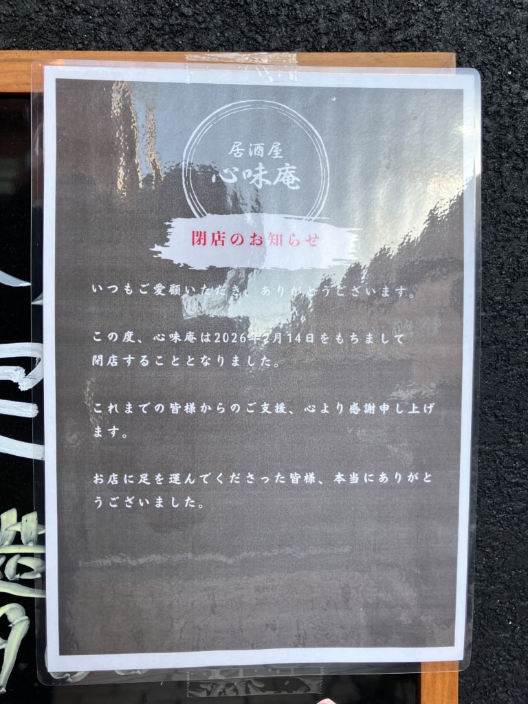 阪神西宮駅近く六湛寺町の「居酒屋 心味庵(ここみあん)」が閉店しています。