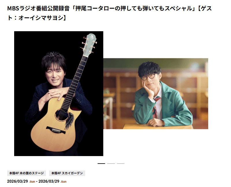 MBSラジオ「押尾コータローの押しても弾いてもスペシャル」の公開録音を行います~。