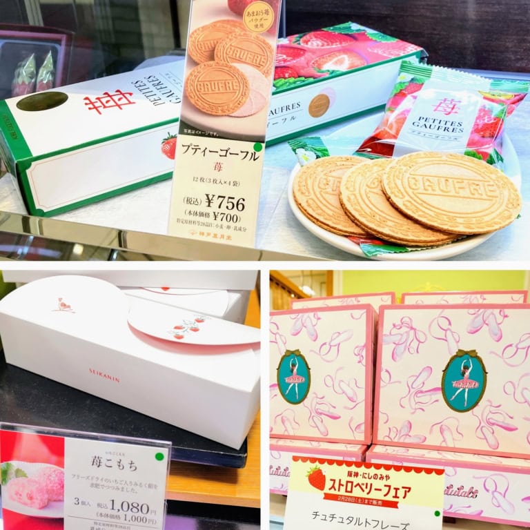 神戸凬月堂のプティーゴーフル 苺に、菓匠 清閑院の苺こもち、ロクメイカン(ボンシャペリー)のチュチュタルトフレーズ、なんかも。ちょっとした手土産にもよさそうなラインナップも充実〜