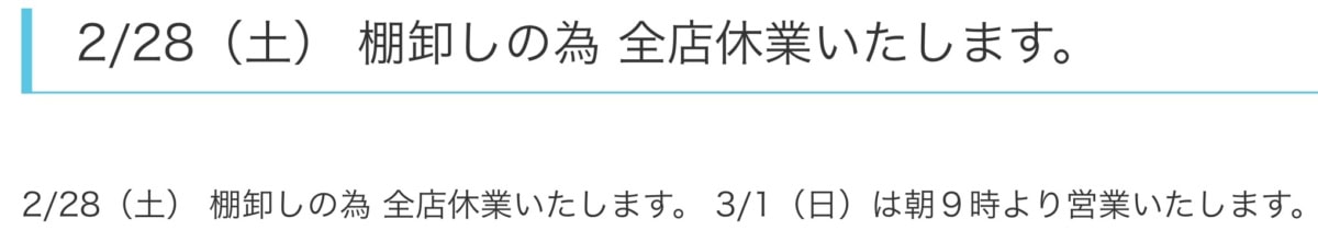 2/28マンダイが全店休業するみたい。間違っていかないように注意