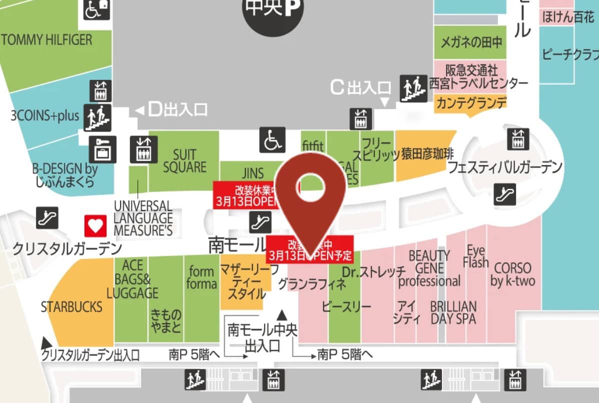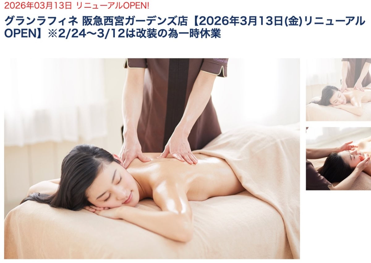 阪急西宮ガーデンズ本館3階にあるリラクゼーションサロン「グランラフィネ」が休業しています。