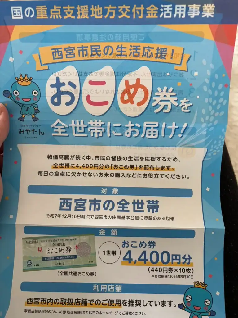 物価高騰対策の一つである「おこめ券」が、各世帯に届き始めているようです。