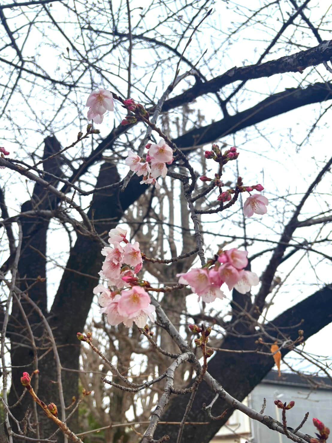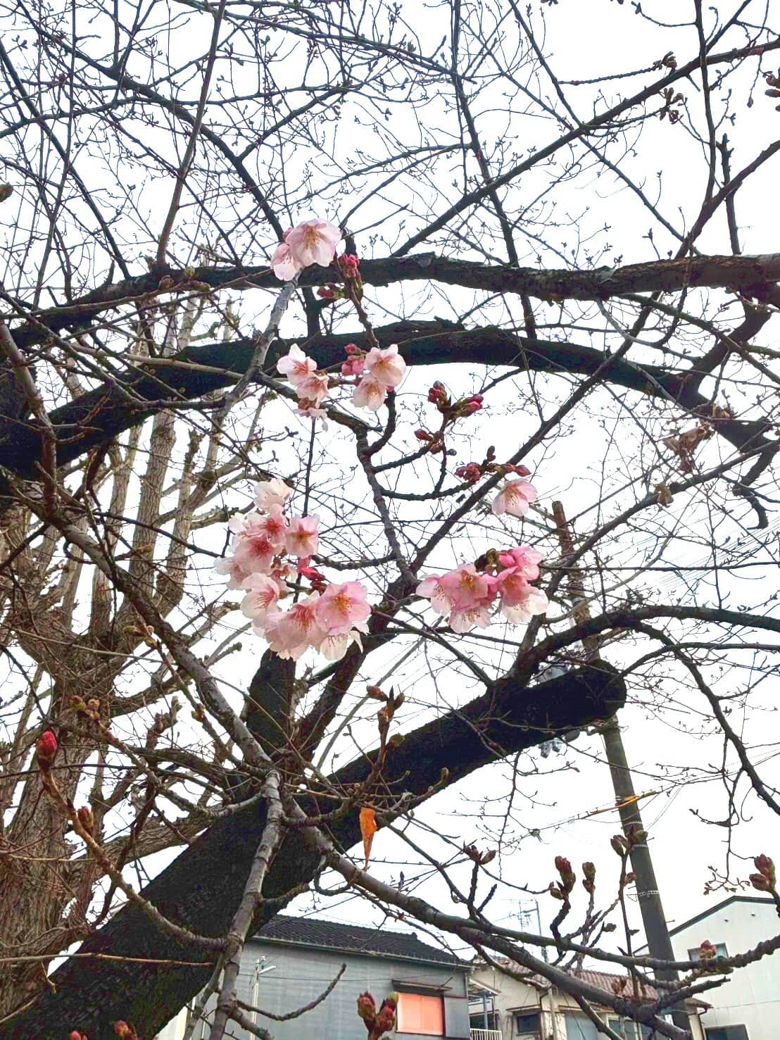 こちらは今津紅寒桜。西宮市植物生産研究センターが作った早咲き桜で、通常は3月中旬に咲きます。なので、いつもより早い!