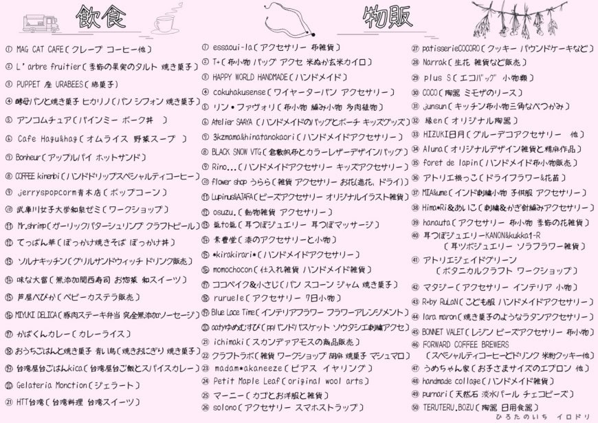 クレープ、ベビーカステラ、台湾スイーツ、カレーライス、クラフトビールなど手作り雑貨・アクセサリー販売