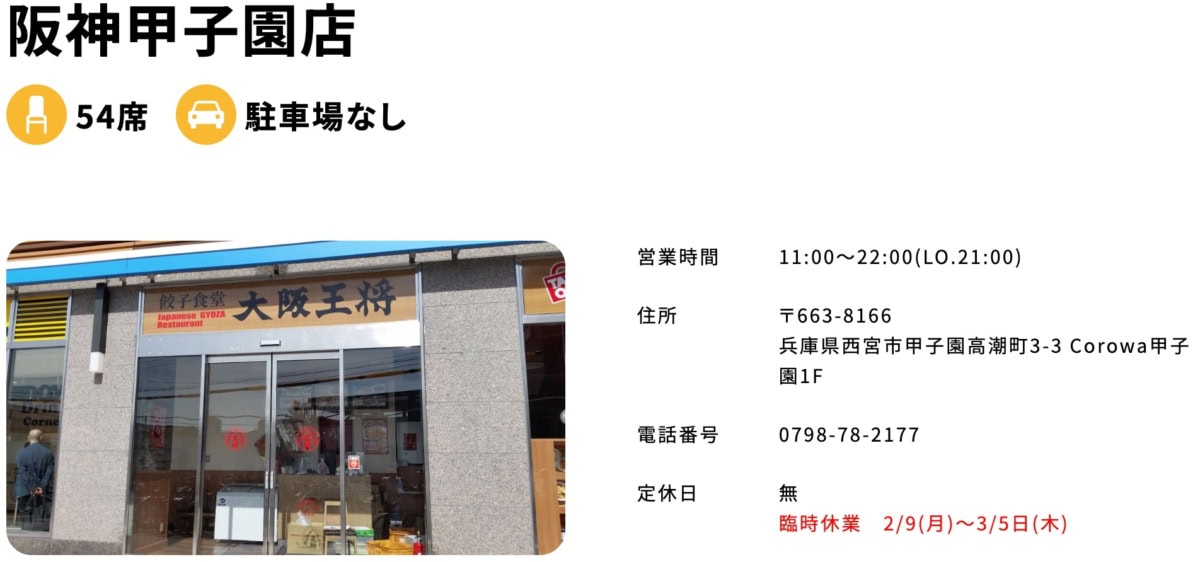 現在臨時休業中のコロワ甲子園1階にある「大阪王将」について、新しい情報が出ていました〜
