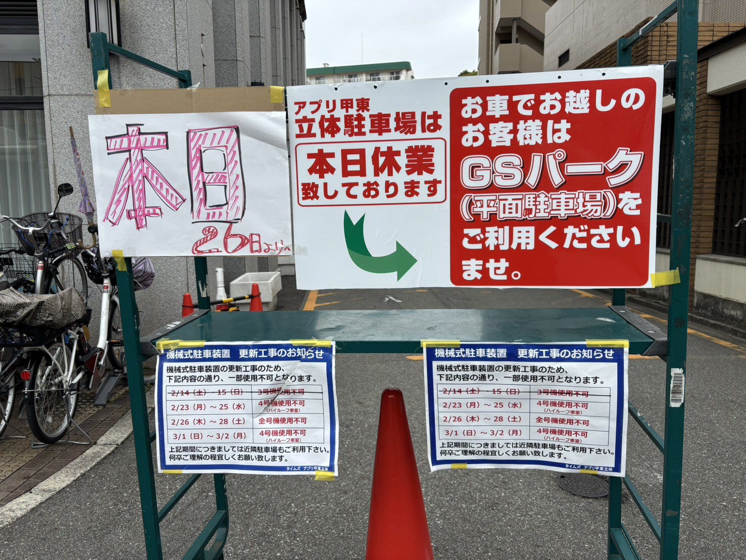 アプリ甲東の駐車場に貼り紙でてました。2月28日は休業します