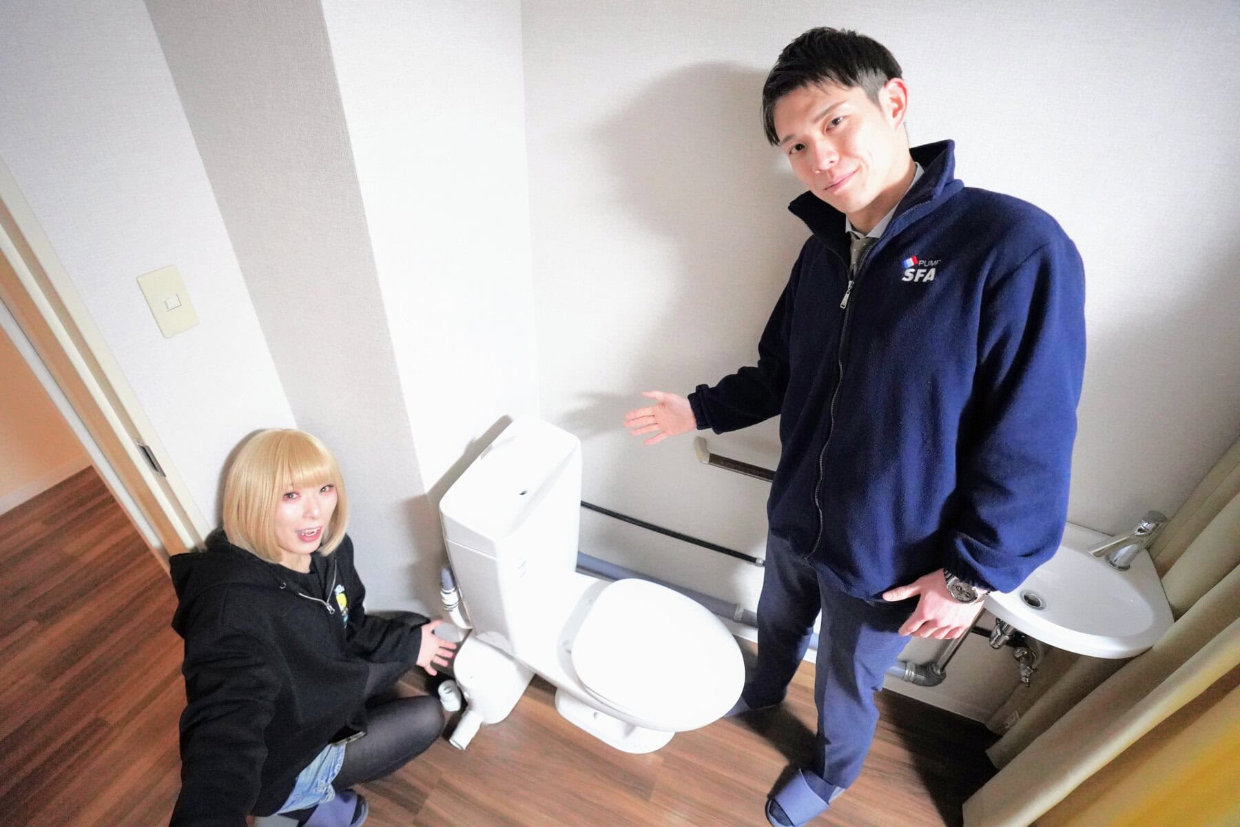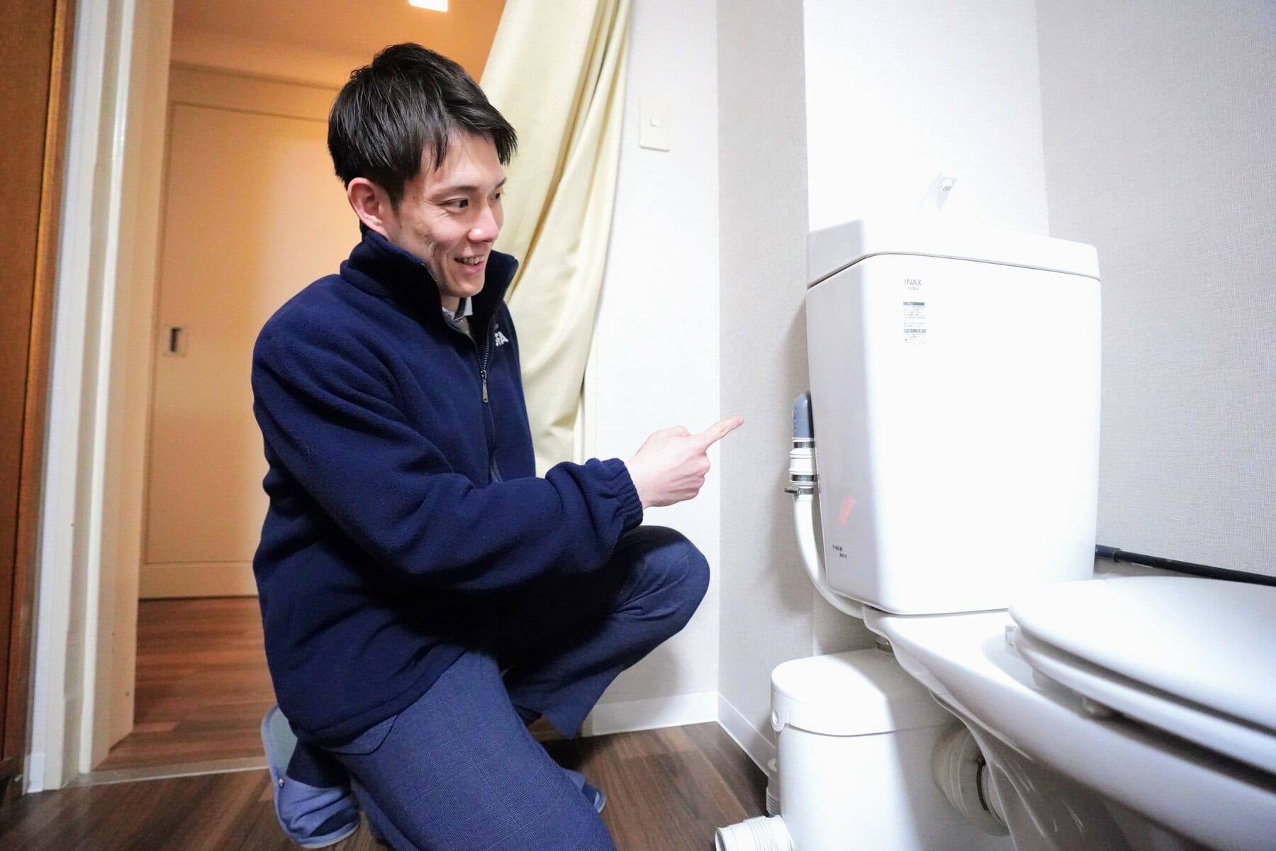 「トイレをつけたいけど高すぎてできない」を解決してくれる画期的なシステムなんです。市販のトイレと組み合わせられるので、普通のトイレと変わらないのもポイント