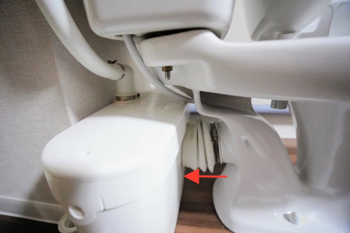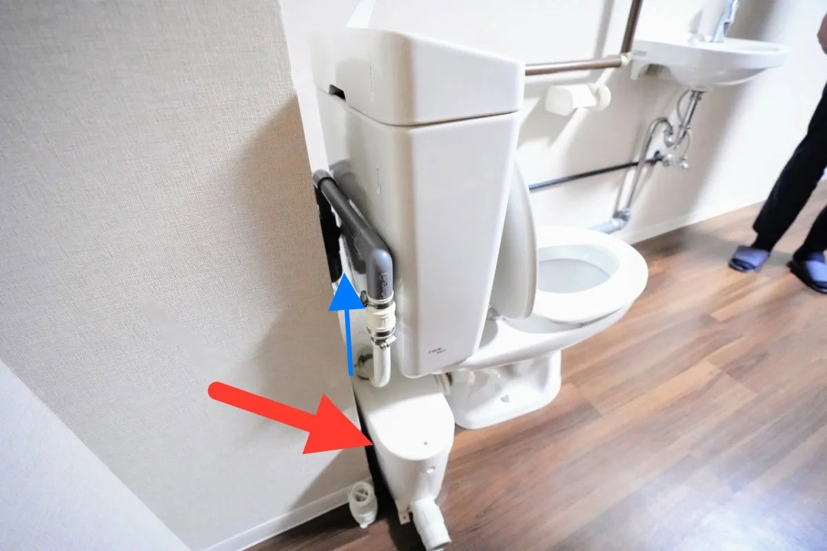 水を流すと中のカッターが汚物を粉砕。ポンプの力で上に向かって圧送しちゃうんです。