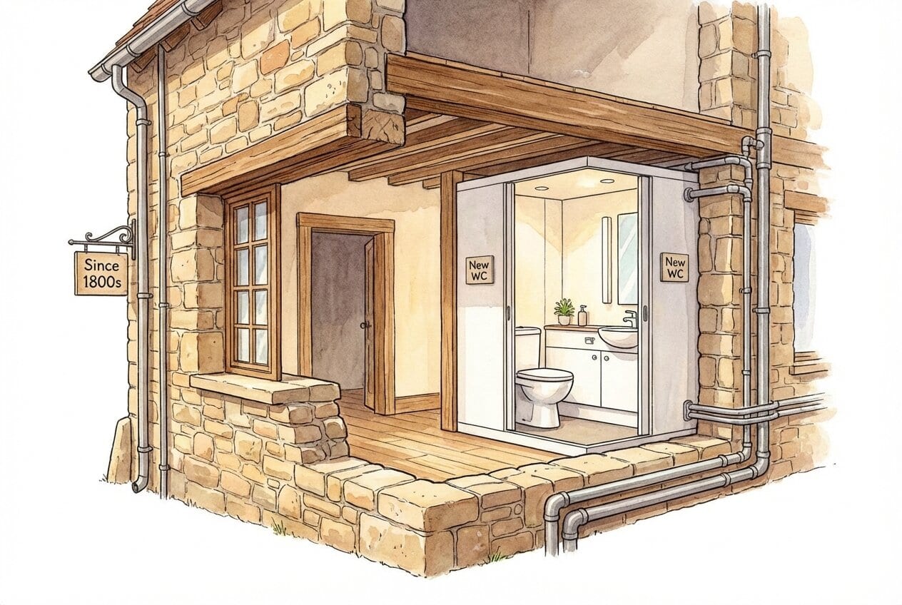 もともとヨーロッパでは建物を100年200年使い続けるのが当たり前なので、建物を壊さずにトイレを増やす技術として生まれたんだそう。