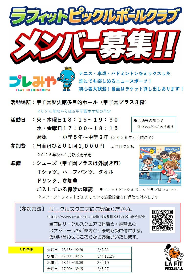 西宮初?甲子園プラスで子ども向け『ピックルボール』クラブ始まるみたい。3/3から体験できる【にしつーPR】