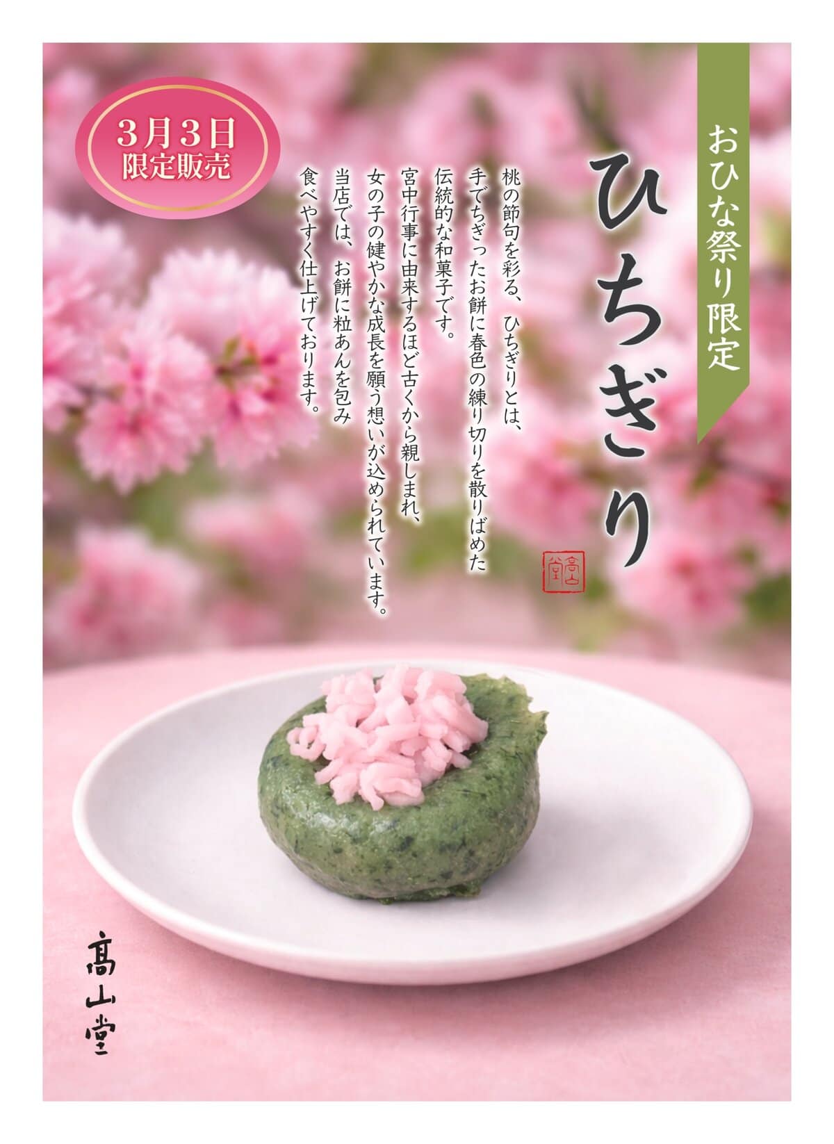 髙山堂からひな祭り限定で「ひちぎり」を販売するようです。