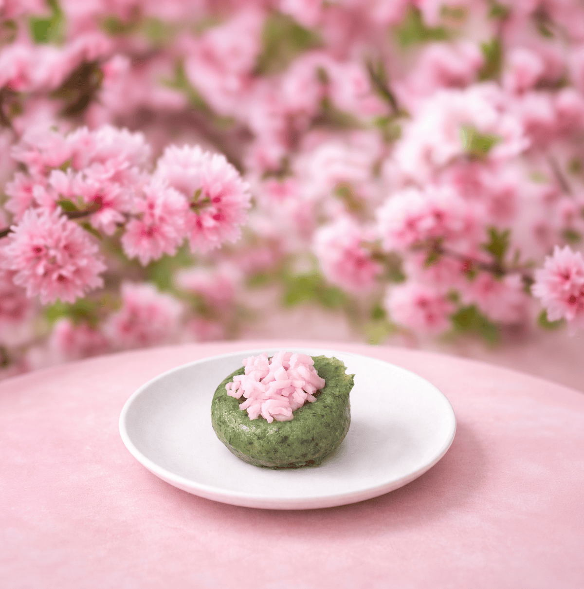 めっちゃ春っぽい。緑はお餅にピンクは練り切りみたい。珍しい感じ