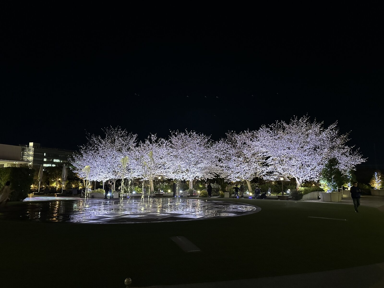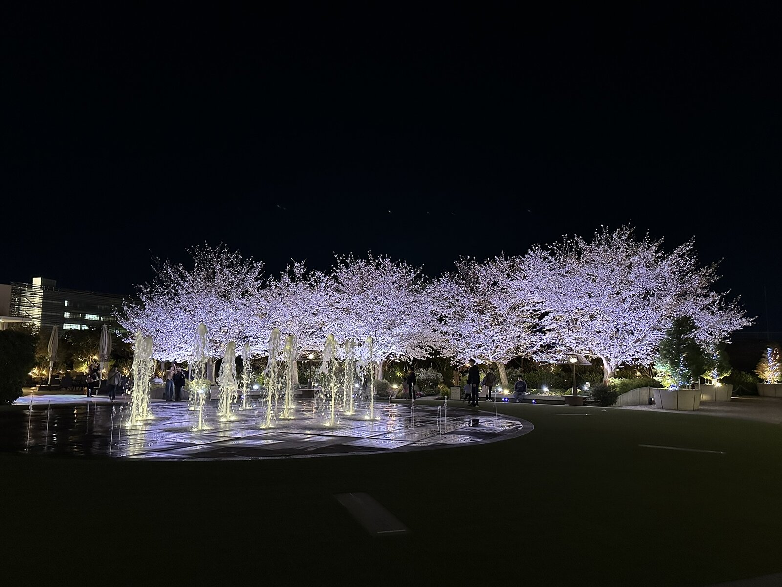 昨年はこんな感じ。毎時0分、30分から始まる噴水ショーと共に撮ると幻想的。