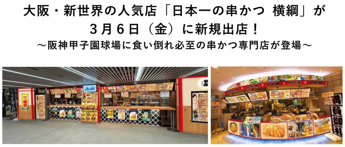 大阪・新世界の人気店「日本一の串かつ 横綱」が3月6日(金)に新規出店!~阪神甲子園球場に食い倒れ必至の串かつ専門店が登場~|ニュースリリース|阪神電気鉄道株式会社より引用