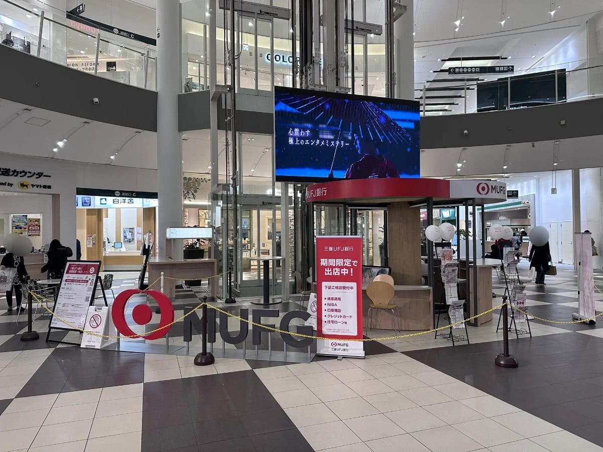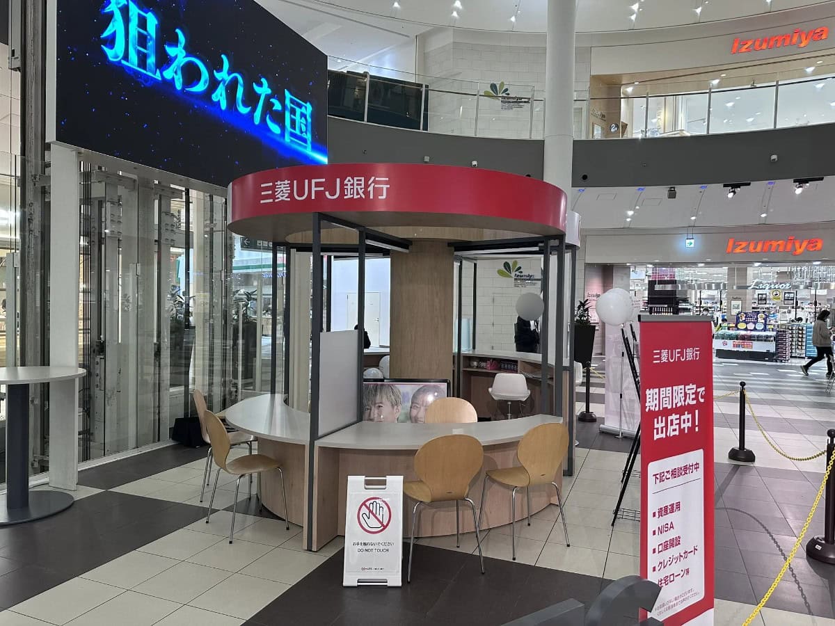 突如出現した銀行の正体は三菱UFJ銀行。出張で出店しているとのこと。