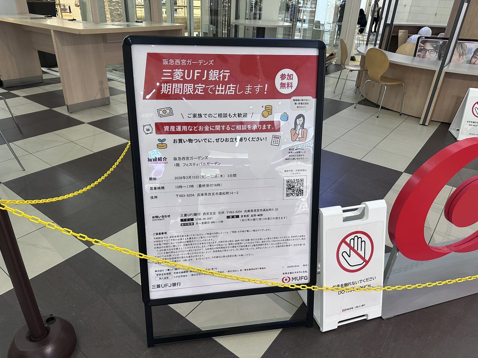 阪急西宮ガーデンズのフェスティバルガーデンに銀行が出現しました。