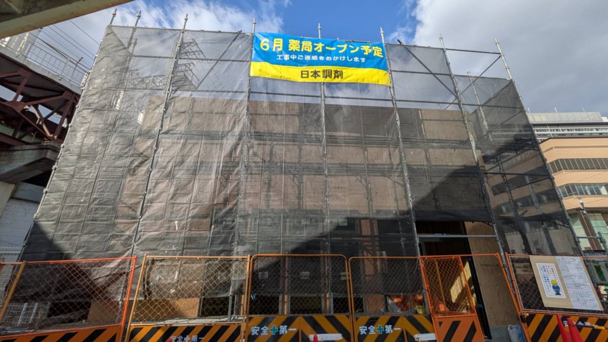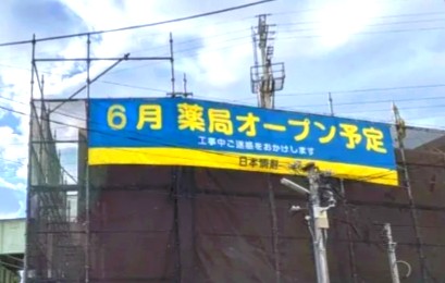 阪神国道駅のすぐ横で作っている調剤薬局「日本調剤」で、新情報が貼り出されていました〜